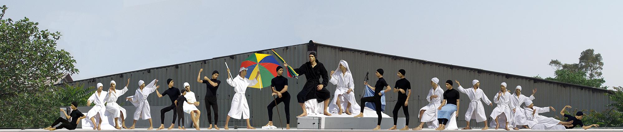Playing the role of the sculptures